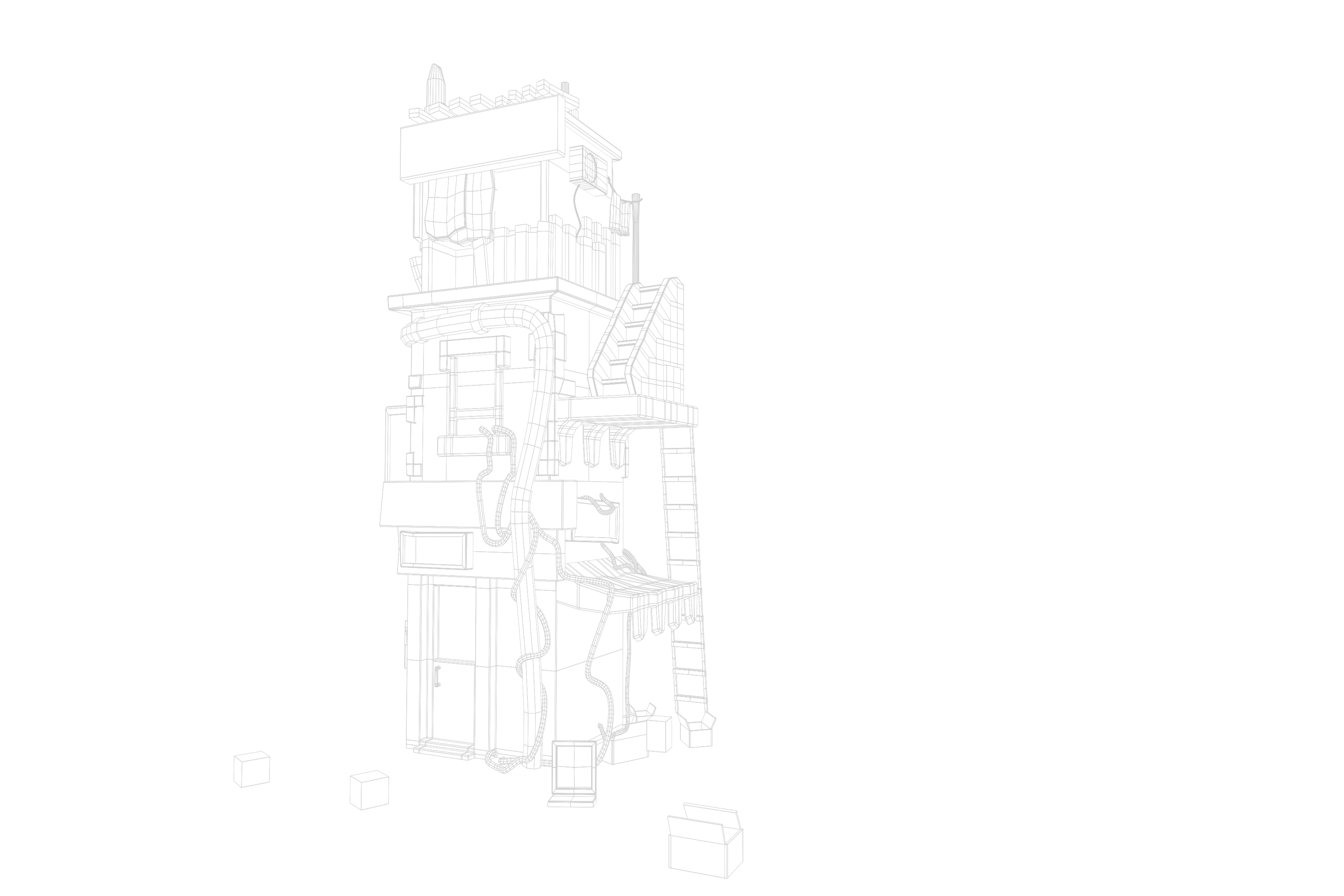 - Full environment creation: modeling, UV mapping, retopology, texturing, lighting, and final scene layout